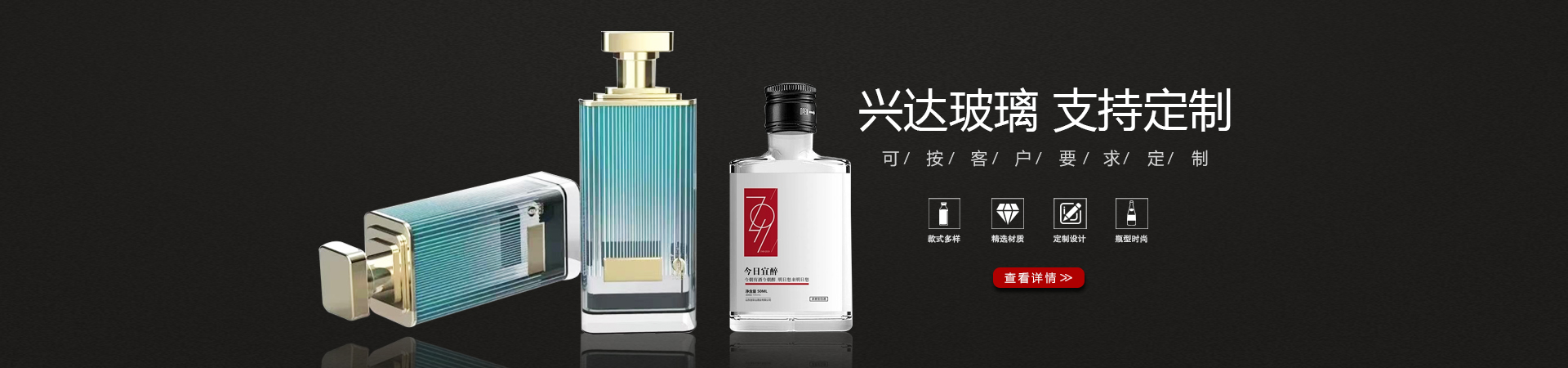 山东郓城兴达玻璃有限公司位于水浒故里—山东省菏泽市郓城县,这里物产丰富,人杰地灵,物流发达,地理位置好,交通便利。 公司主要生产经营、晶白料酒瓶、茶油瓶、喷涂瓶、电镀瓶、小酒瓶等玻璃瓶系列。我公司生产的玻璃瓶品种多、质量好、价格低,不但可以在短时间内设计出新瓶型及制成新模具,并且还可以根据客户的需求来进行设计制作,使得我公司所生产的玻璃瓶产品受到市场的一致青睐。 质量是企业的生命,创新是企业的未来。